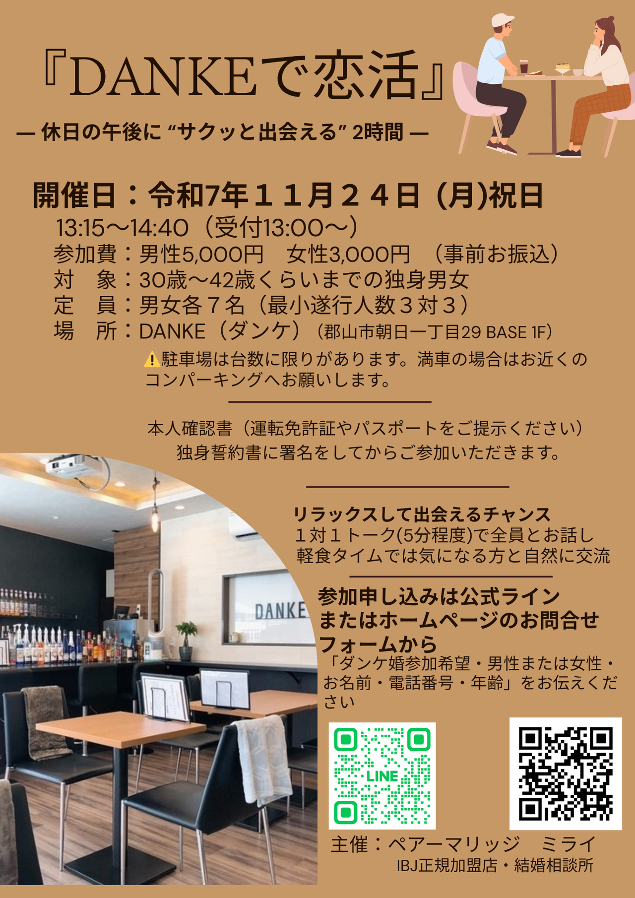 メッセージに「ダンケ婚参加希望」とご入力ください。⏬